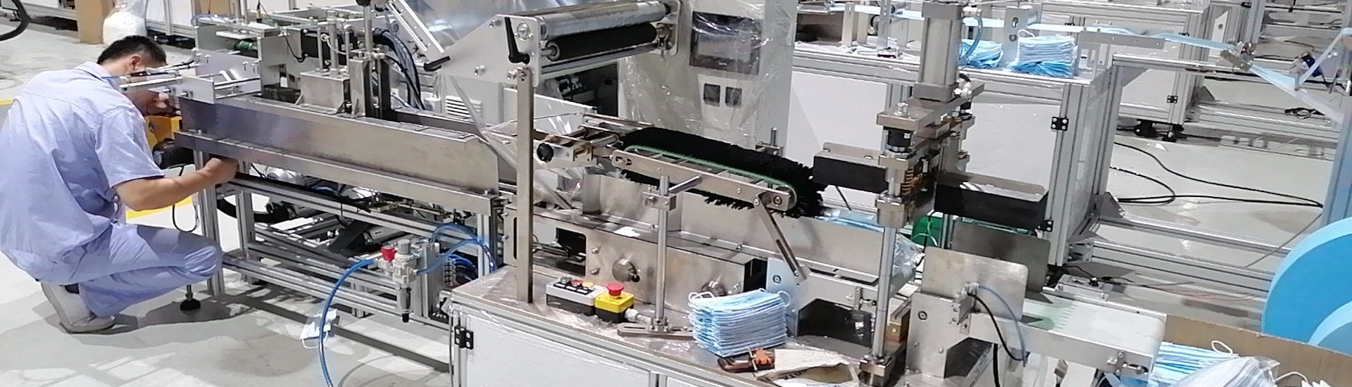 Automatic surgical mask making machine, used for disposable masks, from feeding, nasal line implantation, welding/folding/cutting of blank masks, earring knitting to the completion of the complete mask. Then pass the finished mask through the ultraviolet sterilization box, our visual inspection system can intelligently select qualified products, and finally complete automatic packaging.